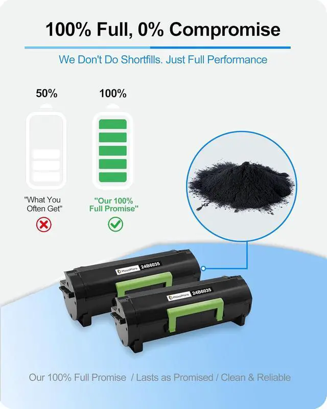 Model: 24B6035 Toner Cartridge. Formulated with premium A-Grade toner, this black toner cartridge produces sharp, professional black-and-white prints with consistent monochrome accuracy. They are engineered for reliable performance that helps maintain your printers health and extends its lifespan.