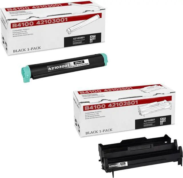 Package contents: 1 Pack black Compatible for OKI B4100 42102801 Drum Unit and 1 Pack black Compatible for OKI B4100 42103001 toner cartridge.