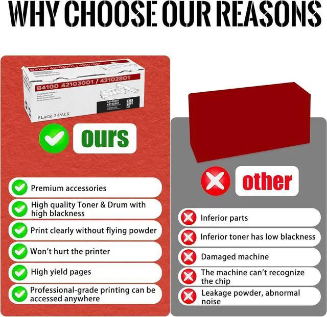 Compatibility Excellence: Designed to work seamlessly with a wide range of printer models, the B4100 42103001 and B4100 42102801 ensures a smooth installation process. Simply insert the cartridge and start printing immediately, saving you time and effort.