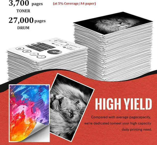 High Page yield Printing:3,700 pages per B4100 42103001 toner cartridge at 5% coverage on A4 paper and 27,000 pages per B4100 42102801 Drum Unit at 5% coverage on A4 paper.