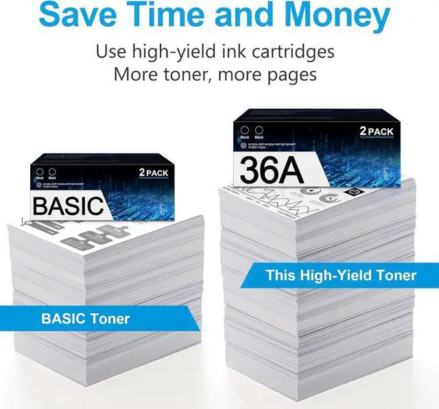 High Yield Performance: each 36A black toner prints approximately 2,300 pages,Based on 5% coverage (Letter/A4) reducing replacement frequency and ensuring long life.