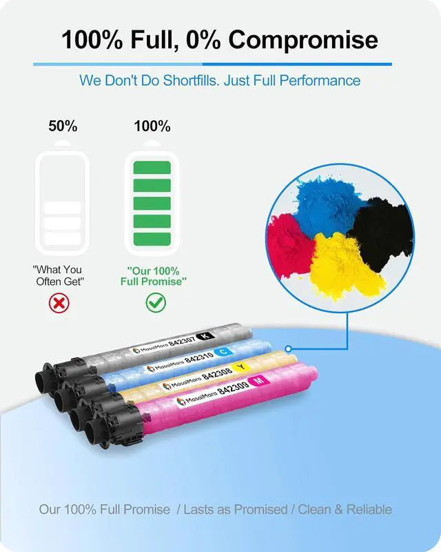 Model: IM C2000 / IM C2500 (842307 842310 842309 842308) Toner Cartridges. Formulated with premium A-Grade toner, these cartridges deliver sharp, professional prints with vibrant color accuracy while ensuring reliable performance that protect your printer and extends its lifespan.