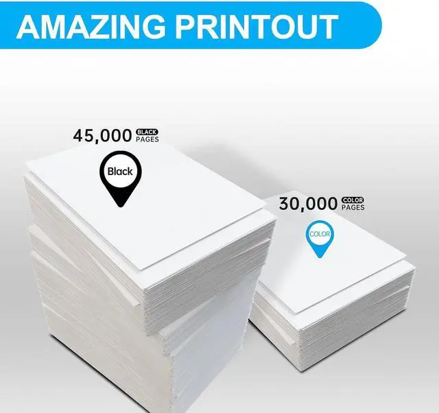 High Page Yield: Print up to 45,000 pages per black, 30,000 pages per color Toner cartridge at 5% coverage on letter/a4