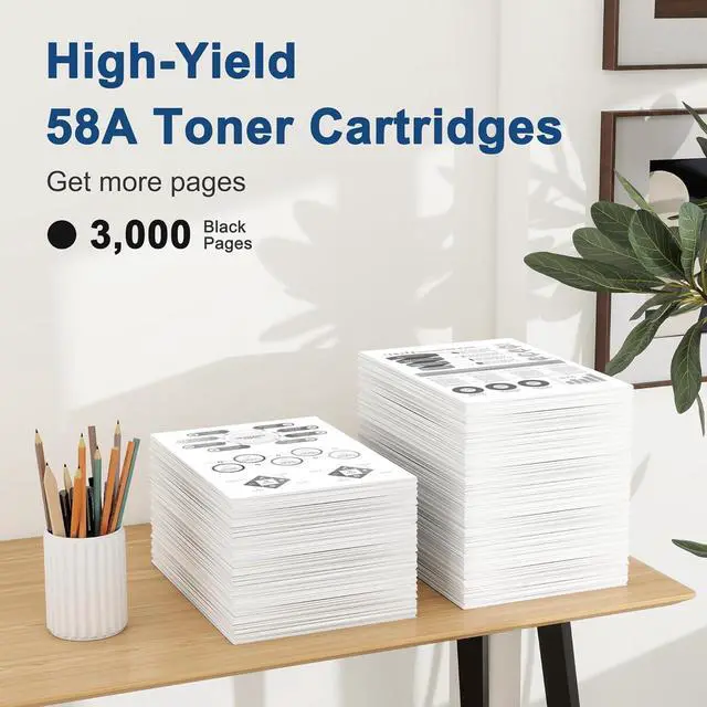 High Page Yield: Up to 3,000 pages per cartridge for 58A CF258A black toner (Letter A4, at 5% coverage)