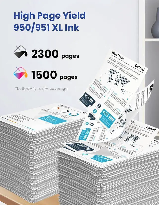 Easy Installation and Use: Our 950 951 XL ink cartridges are designed for easy installation and use, so you can spend less time troubleshooting and more time printing. Simply pop them in, and you're ready to go