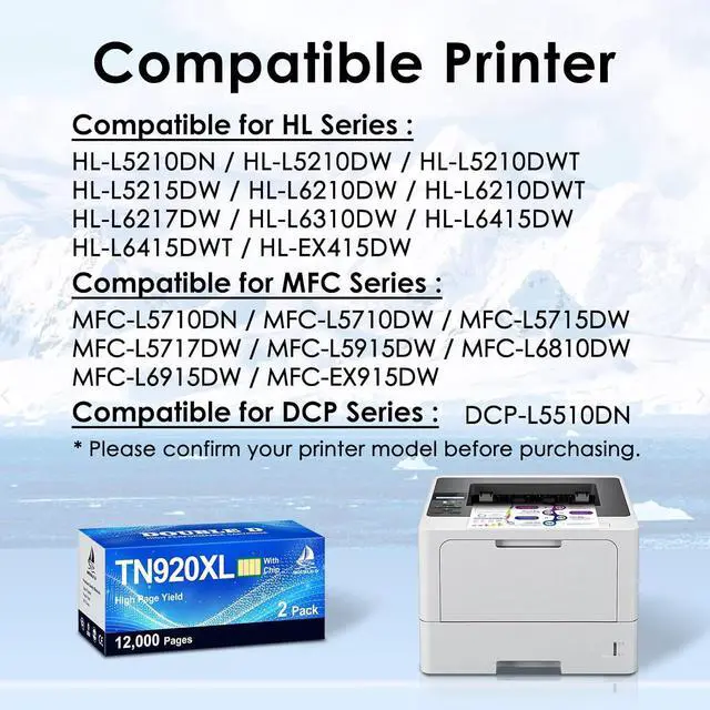 Compatible Printers HL-L5210DN, HL-L5210DW, HL-L5210DWT, HL-L5215DW, HL-L6210DW, HL-L6210DWT, HL-L6217DW, HL-L6310DW, HL-L6415DW, HL-L6415DWT, HL-EX415DW, DCP-L5510DN, MFC-L5710DN, MFC-L5710DW, MFC-L5715DW, MFC-L5717DW, MFC-L5915DW, MFC-L6810DW, MFC-L6915DW, MFC-EX915DW Printers.