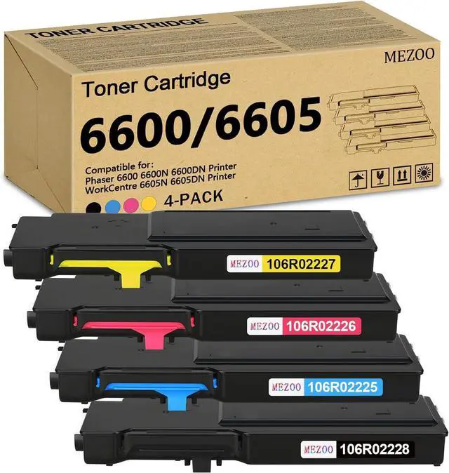 Package includes: 4 packs of Phaser 6600 WorkCentre 6605 toner cartridges,1 Pack Black 106R02228 Toner,1 Pack Cyan 106R02225 Toner,1 Pack Magenta 106R02226 Toner,1 Pack Yellow 106R02227 Toner