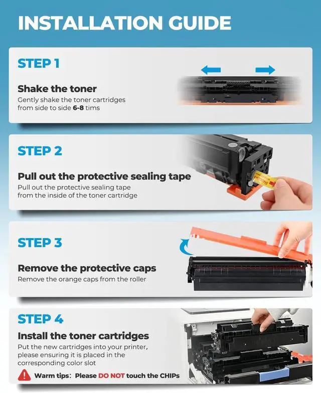 [With Chip] These 58X compatible with hp toner cartridge are alread installed with chips, No need to transfer orginal 58X or 58A toner chip to them