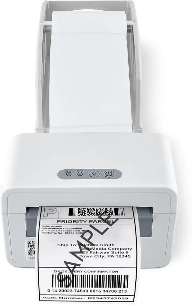 : Our TIMOZIA Thermal Shipping Label Printer features both USB and Bluetooth interfaces, ensuring seamless integration with Android, iOS, Windows, macOS, and ChromeOS devices. Device compatibility isnt an issue when printing shipping labels, warehouse labels, market labels, or waybills. Whether using your phone or PC, this thermal label printer offers a wide range of device compatibility for hassle-free printing.
