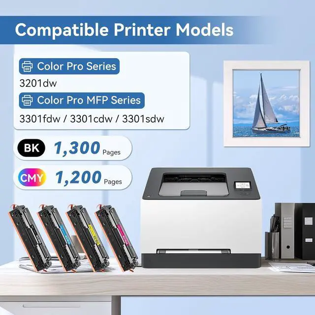 [218A Toner Cartridges 4 Pack Compatible with Printers]: Color Laserjet Pro MFP 3201dw, Color Laserjet Pro MFP 3301fdw, Color Laserjet Pro 3301cdw, Color Laserjet Pro 3301sdw Printer