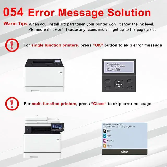 Compatible Printers: 054 CRG-054 toner compatible with Canon 054 CRG054 imageCLASS Series MF640C/MF641Cw/MF641Cdw/MF642Cdw/MF643Cdw/ MF644Cdw/MF645Cx/LBP622CdW/LBP621CW/LBP623CW Laser Printer