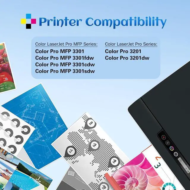 2.Compatible with: For HP Color Laserjet Pro MFP 3201dw, Color Laserjet Pro MFP 3301fdw, Color Laserjet Pro 3301cdw, Color Laserjet Pro 3301sdw Laser printer