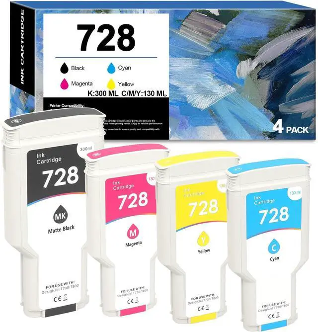 HIGH INK VOLUME:Each 728 Ink Cartridge comes with Hp 728 Matte Black 300ML capacity, Cyan,Magenta 130ML capacity,Yellowensuring you can complete larger projects without frequent replacements
