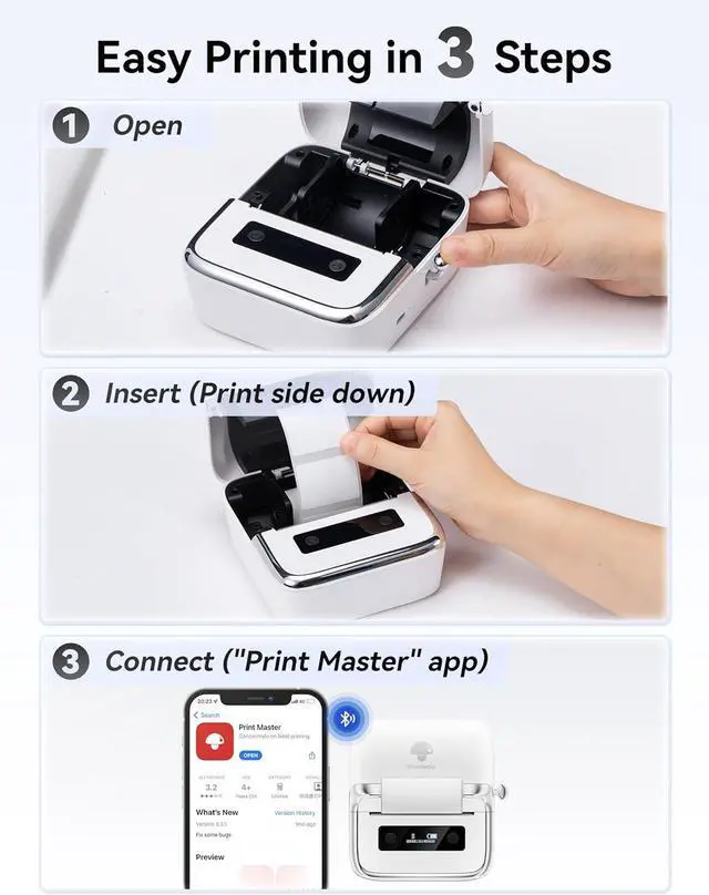 Compact, Lightweight & Easy to Use: Weighing just 390g, the M250 sticker printer fits easily in a bag or pocket. Its simple paper-loading design allows for quick setup. Print professional-quality labels anytime, anywhere via Bluetooth or USB connectionperfect for on-the-go labeling.
