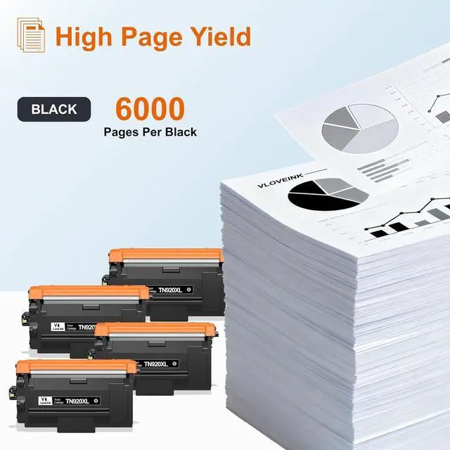 High Page Yield: Up to 6,000 pages per TN-920XL black toner cartridge, up to 24,000 pages with 4x TN-920XL black toner cartridges (based on 5% coverage)
