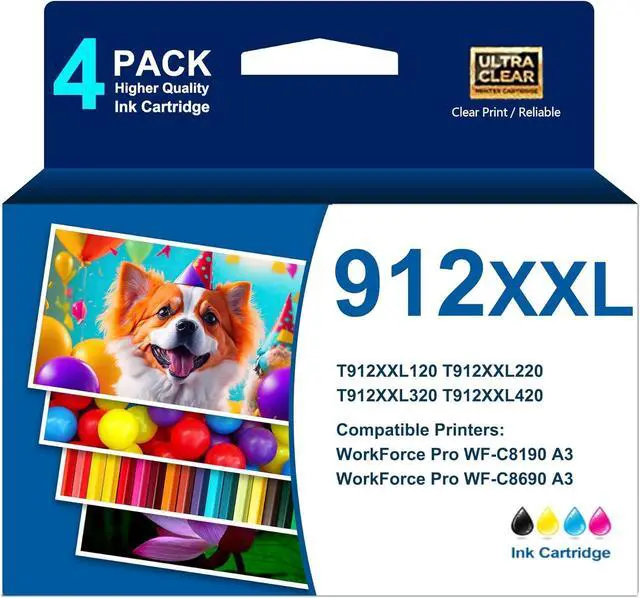 Compatible Printers: 912XL Ink Cartridges Replacement for WorkForce Pro WF-C8190 A3 WorkForce Pro WF-C8690 A3 Series Printer