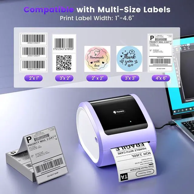 Comprehensive App Support and Easy Setup: The Phomemo D520BT postage label printer comes with app support, offering a range of free templates for customizing labels and print content. It supports the creation of various types of labels, including shipping labels, address labels, barcode labels, and thank-you stickers. The printer includes detailed video tutorials and user manuals to help you set it up quickly. Our customer support team is available to assist you via phone, email, or remote support, ensuring a smooth setup process for your label printer small business