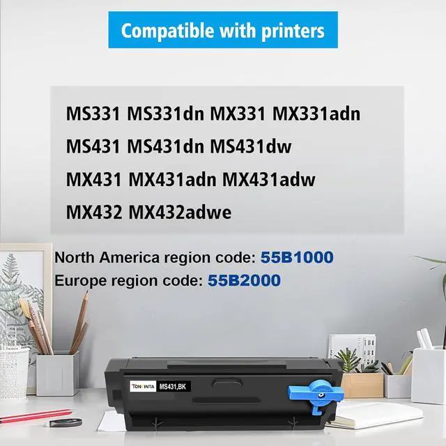 3.Compatible with printers: Compatible for LEXMARK MS331 MS331dn MX331 MX331adn MS431 MS431dn MS431dw MX431 MX431adn MX431adw MX432 MX432adwe Printer.