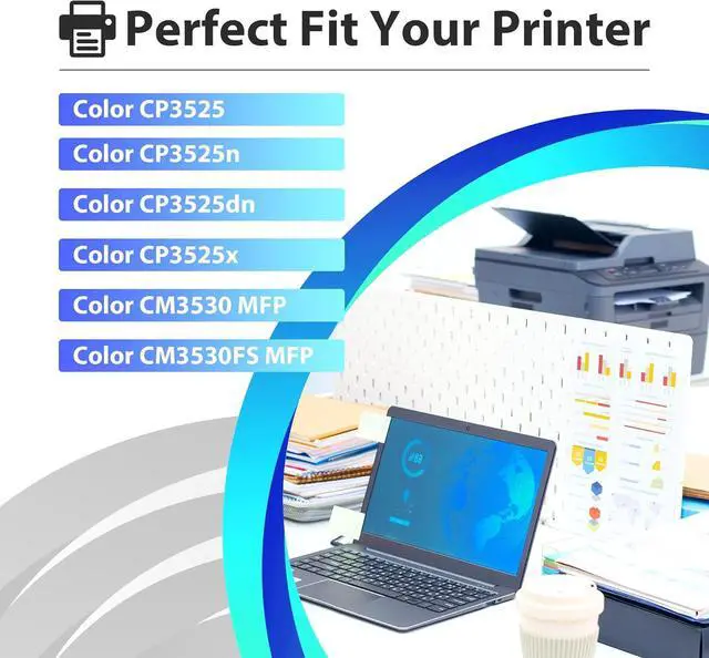 Compatible Printers: 504X 504A toner cartridge with upgraded chip compatible for Color CP3525 CP3525n CP3525dn CP3525x CM3530 MFP CM3530FS MFP printer