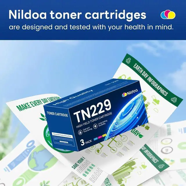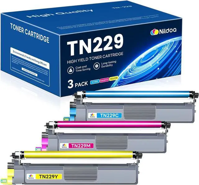 Package Contents: Nildoa 3 Pack TN229 Toner Cartridge Replacement for Brother TN229 TN229C TN229M TN229Y Toner Cartridge High Yield