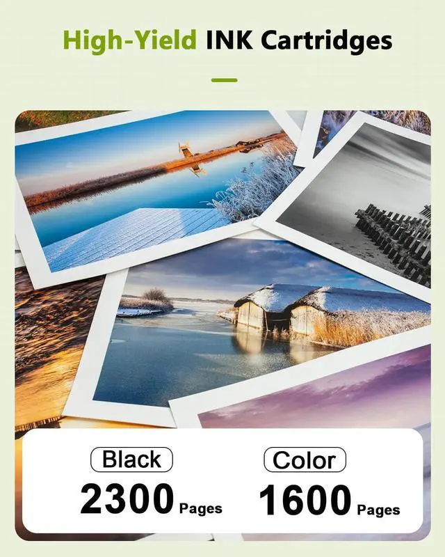 Page Yield: At 5% coverage (Letter A4 paper), the black ink cartridge can print up to approximately 2,300 pages, and each color ink cartridge can print up to approximately 1,600 pages