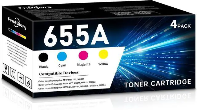 Package Contents: 4-Pack 655A Toner Cartridges (Black Cyan Magenta Yellow)