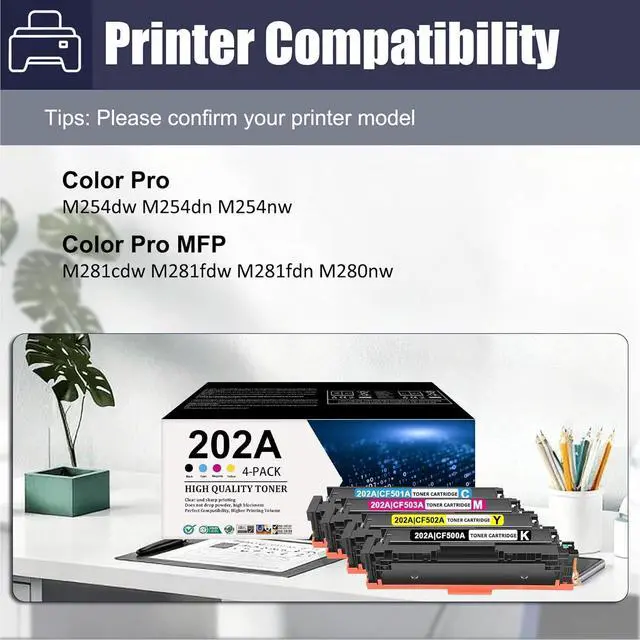 Printer Compatibility: Compatible with Color Pro M254dw/M254dn/M254nw, Color Pro MFP M281fdw/MFP M281fdn/MFP M281cdw/MFP M280nw