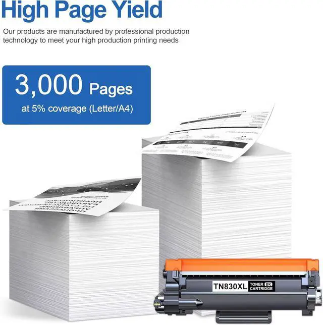 High Page Yield: Per TN830XL Toner Cartridge can print 3,000 Pages at 5% coverage (Letter/A4)