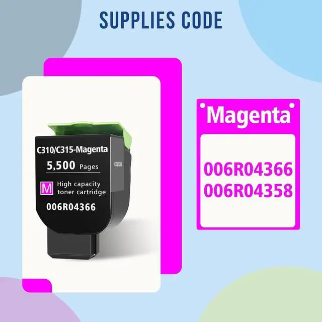 High-yield C315 magenta toner cartridge can prints 5,500 pages*2 pack,Letter/A4, at 5% coverage,very suitable forschools,hospital,company,law office,home and office with a lot of printing.