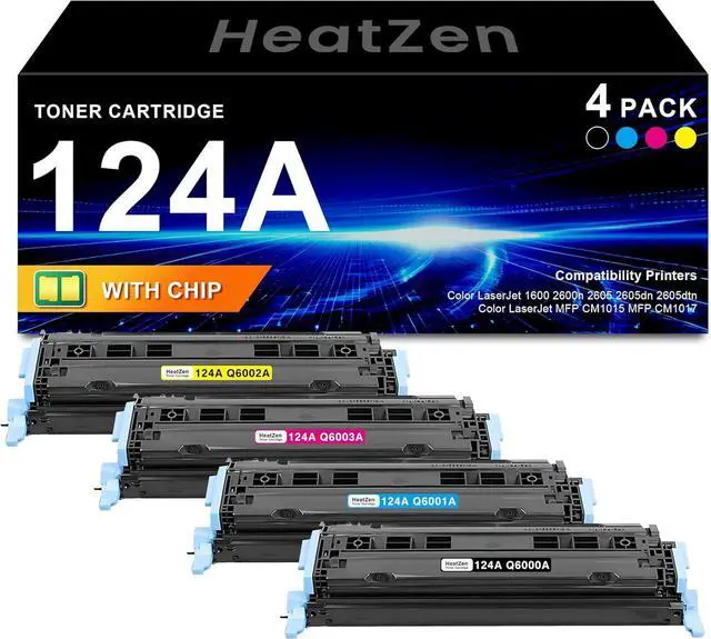 Package Contains: 4 Pack 124a toner cartridge replacement for HP 124a toner cartridge (1x Q6000A black, 1x Q6001A cyan, 1x Q6002A yellow, 1x Q6003A magenta), these 124a toner cartridge offer excellent value and cost-effective toner cartridges, worth your choice!