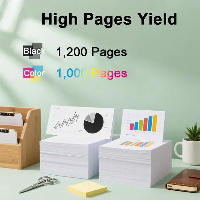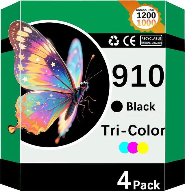 High Pages Yield: Up to 1200 pages for each Black 910 ink cartridge1000 pages for each Color 910 ink cartridges at 5% coverage of A4/letter. All 910 ink cartridges can print a natural realistic color, giving you a clear visual sense and experience longer-lasting prints with the 910 ink Combo Pack.