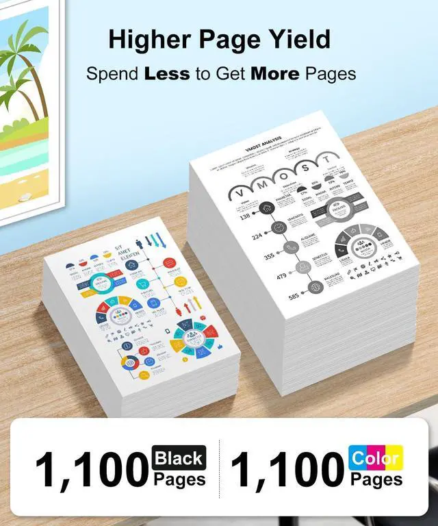 High Page Yield: Up to 1100 pages per 822XL black ink cartridge and 1100 pages for per 822XL color ink cartridge (Letter/A4, at 5% coverage)