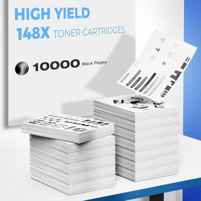 High Page Yields: 10000 pages per 148X black toner cartridges at 5% coverage for A4 paper