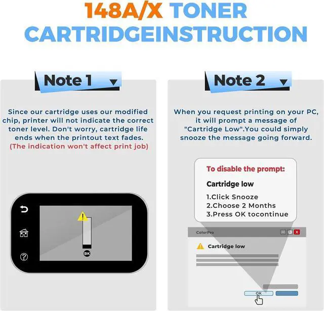 Excellent Performance: The 148X W1480X toner cartridge compatible for hp 148x toner cartridge adapts the latest upgraded chip, ensuring high compatibility. 148X toner cartridge also avoids common printing problems such as streaks, smudges, and leaking. It delivers vivid and clear printing and produces sharp text and vibrant images, ensuring consistent, high-performance output