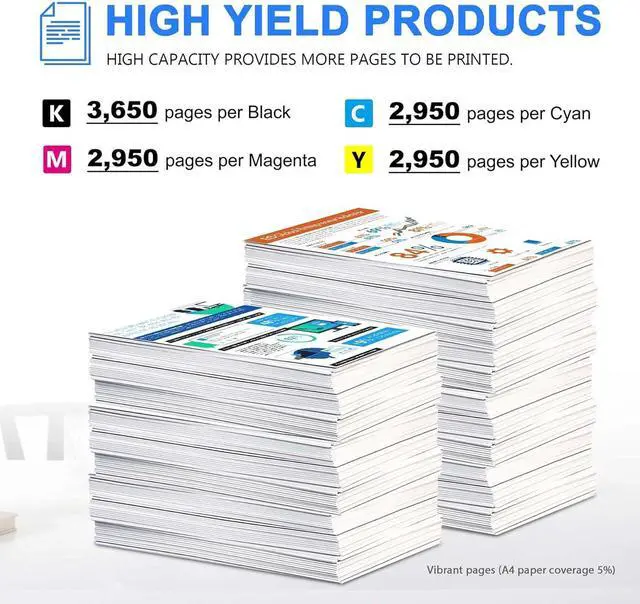 High Page Yield (approx): Up to 3,650 pages for 206a black toner cartridge,up to 2,950 pages for 206a cyan toner cartridge,up to 2,950 pages for 206a magenta toner cartridge,up to 2,950 pages for 206a yellow toner cartridge ( Letter/A4, at 5% Coverage )