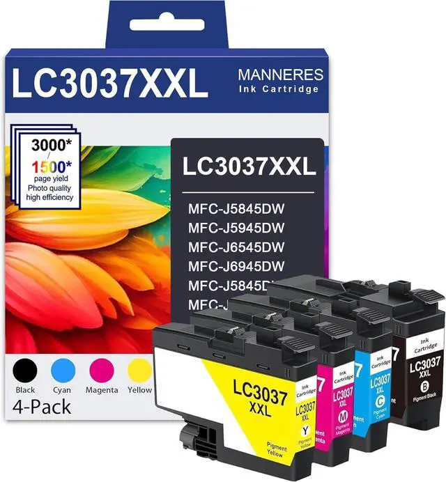 Package Includes: 1 x Black LC3037BK, 1 x Cyan LC3037C, 1 x Magenta LC3037M, 1 x Yellow LC3037Y (Total 4-Pack)