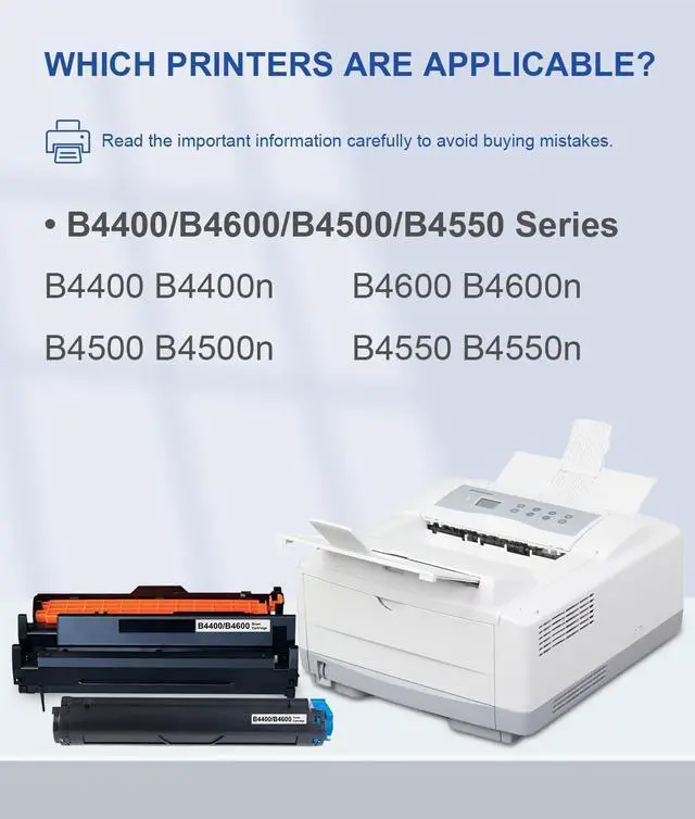 43502301 Toner & 43501901 Drum Cartridge Compatible for: OKI B4600 B4600n B4400 B4400n B4500 B4500n B4550 B4550n Printers