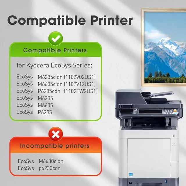 Compatible Printers : for Kyocera EcoSys M6235cidn(1102V02US1), M6635cidn(1102V12US1), P6235cdn(1102TW2US1), M6235, P6235 Printer