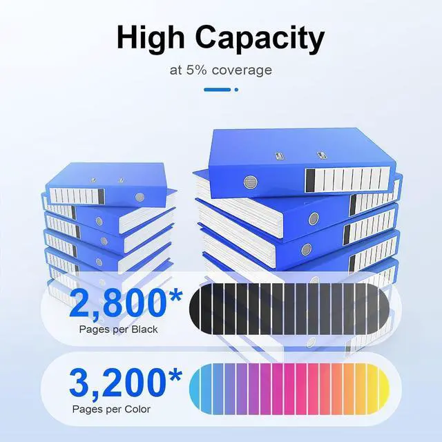 Cartridge yield (approx.): Page Yield: 2,800 pages per Black toner cartridge, 3,200 pages per Color toner cartridge at 5% coverage (Letter/A4)