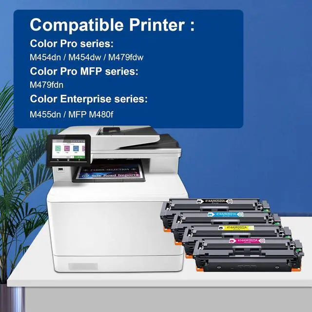 Package Contents: 1x 414A W2020A black toner, 1x 414A W2021A cyan toner, 1x 414A W2022A yellow toner, 1x 414A W2023A magenta toner (414A toner cartridges 4 pack and replacement for hp color pro mfp m479fdw ink cartridges, packaging version may vary)