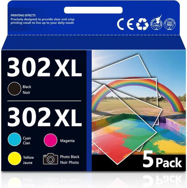 What's in the box: new 302XL Ink Cartridge 5 Pack ( 1 Photo Black 302XL,1 Black 302XL, 1 Cyan 302XL, 1 Magenta 302XL,1 Yellow 302XL)