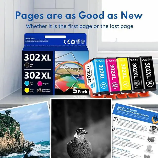 Our 302XL ink cartridges combo pack equipped with the latest upgraded chip, undergoes strict quality control, makes sure quick and easy installation