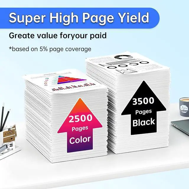 Page yield: A4 paper 5% coverage test, black toner cartridge can print 3500 pages, each color toner cartridge can print 2500 pages