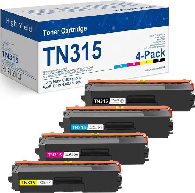 Compatibility with Printer: TN315 High Yield Compatible with Compatible for HL Series: HL-4150CDN HL-4140CW HL-4570CDW HL-4570CDWT Compatible for MFC Series: MFC-9640CDN MFC-9650CDW MFC-9970CDW