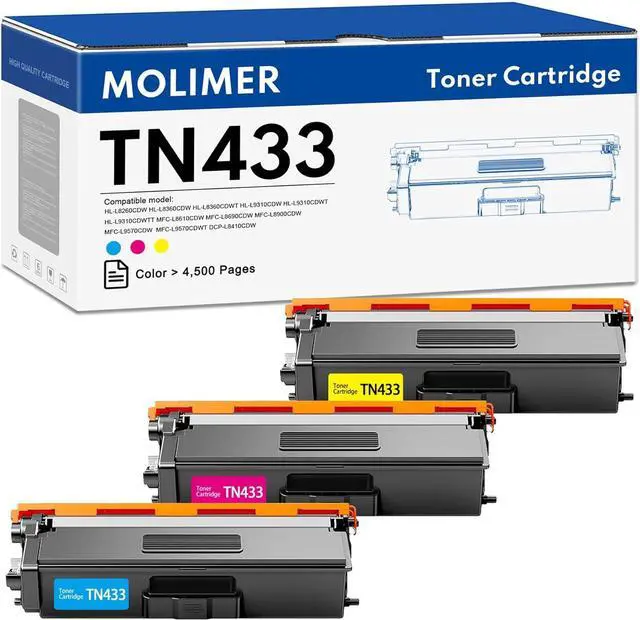 Package Contents: 1 x Cyan TN433C Toner, 1 x Magenta TN433M Toner, 1 x Yellow TN433Y Toner (3 Pack )