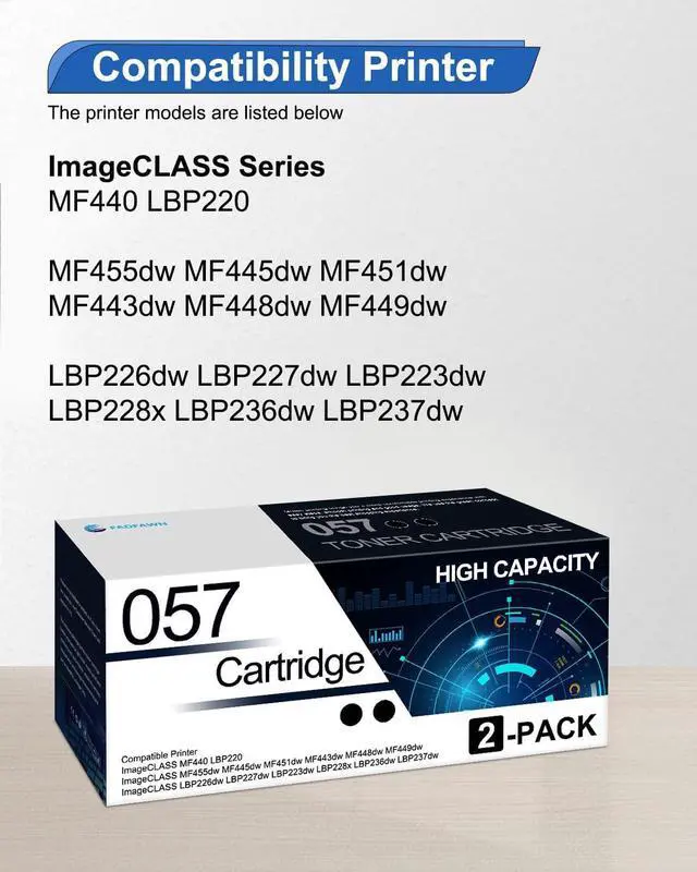 057 Toner Compatible for:ImageCLASS MF455dw MF445dw MF451dw MF443dw MF448dw MF449dw LBP226dw LBP227dw LBP223dw LBP228x LBP236dw LBP237dw MF440 LBP220 Printer