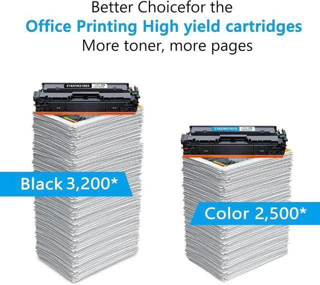 High Page Yield: 3200 pages per 218X black toner cartridge, 2500 pages per 218X color toner cartridge (based at 5% coverage of A4 paper)