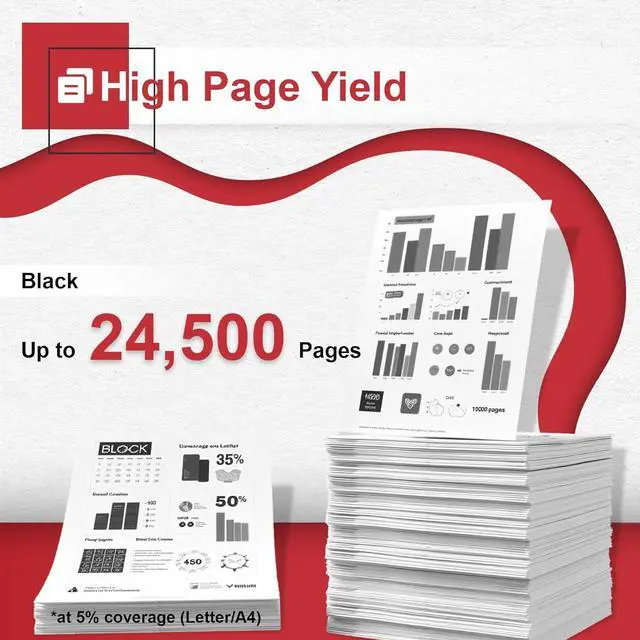 High Page Yield : Up to 24,500 pages per Black toner cartridge(Letter/A4, at 5% coverage).