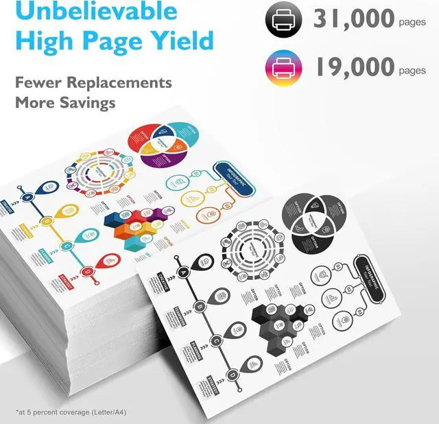 High Page Yield: Up to 31,000 pages per IM C3500 Black toner cartridge,19,000 pages per IM C3500 Cyan Magenta Yellow toner cartridge (Letter/A4, at 5% coverage), ideal for users with high-volume printing needs and reducing frequent replacement