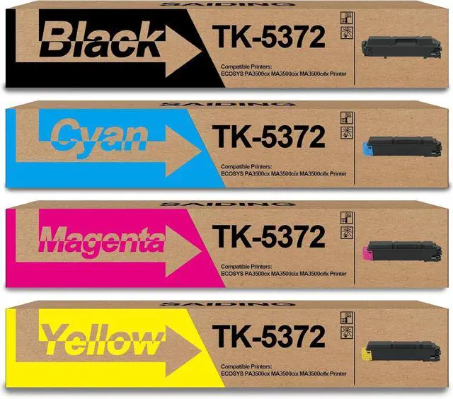 Package Contents: TK5372 Black Cyan Yellow Magenta toner cartidge,4-Pack